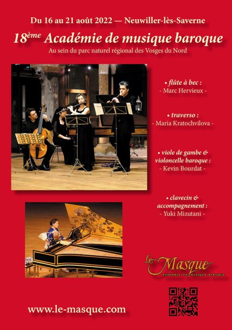 L’ ensemble de musique baroque le Masque anime cet été un stage de musique baroque à Neuwiller-lès-Saverne, dans le nord de l’Alsace du 15 au 21 août.